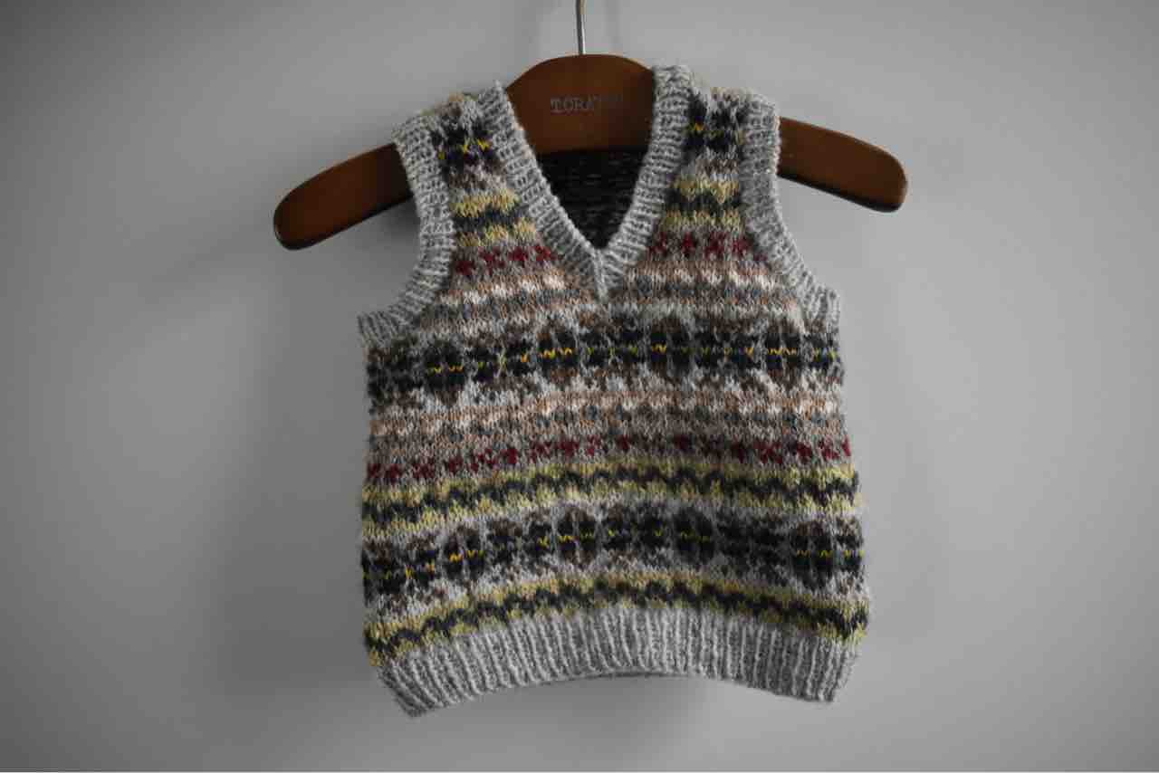 あまり糸で編む子供用フェアアイルベストが少しずつ進んでいます。