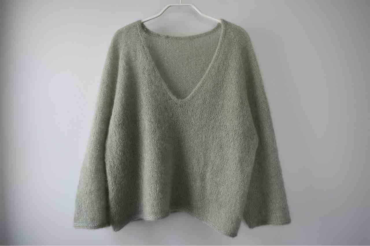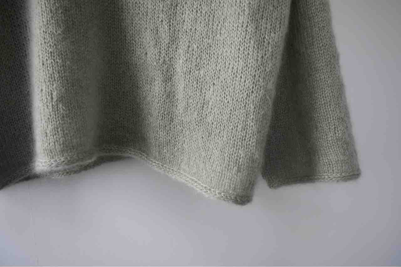 シルクモヘヤ2本引き揃えでの初めての編み地でしたが、全くチクチクせず地肌に来て過ごせました!